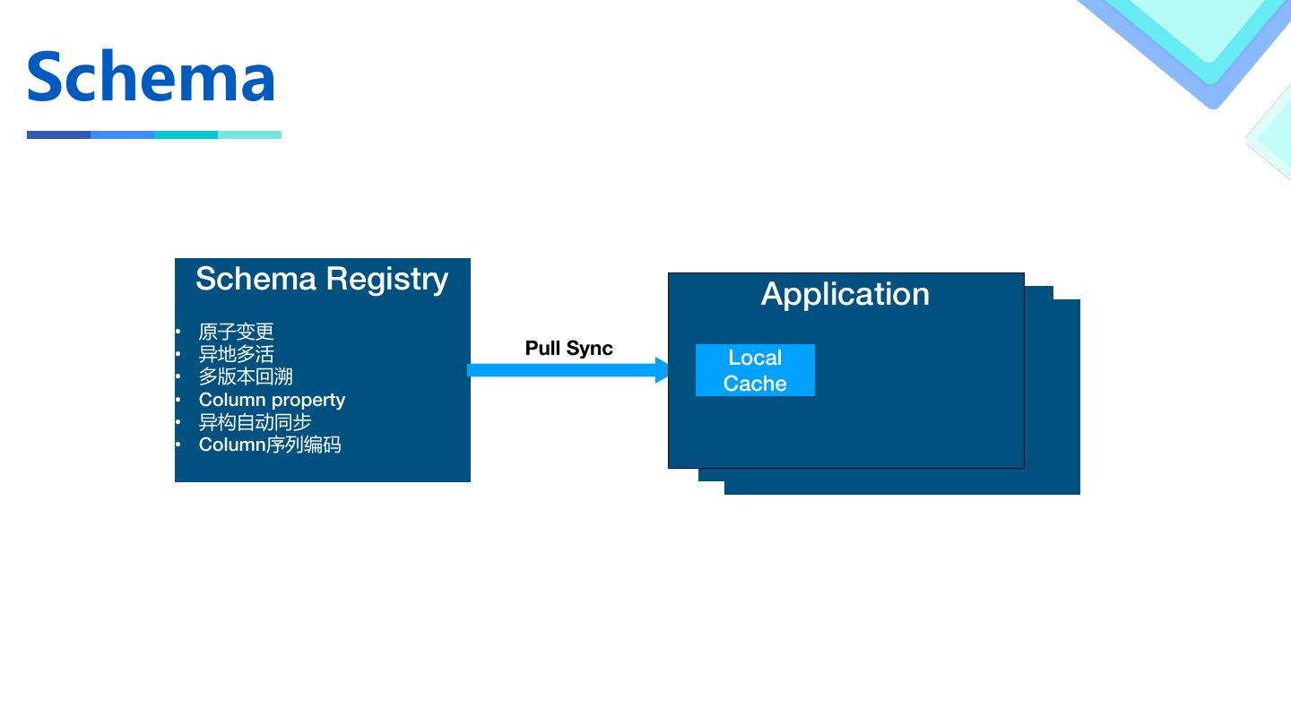 10 .Schema Schema Registry Application Application Application • 原子变更 • 异地多活 Pull Sync Local • 多版本回溯 Cache • Column property • 异构自动同步 • Column序列编码
