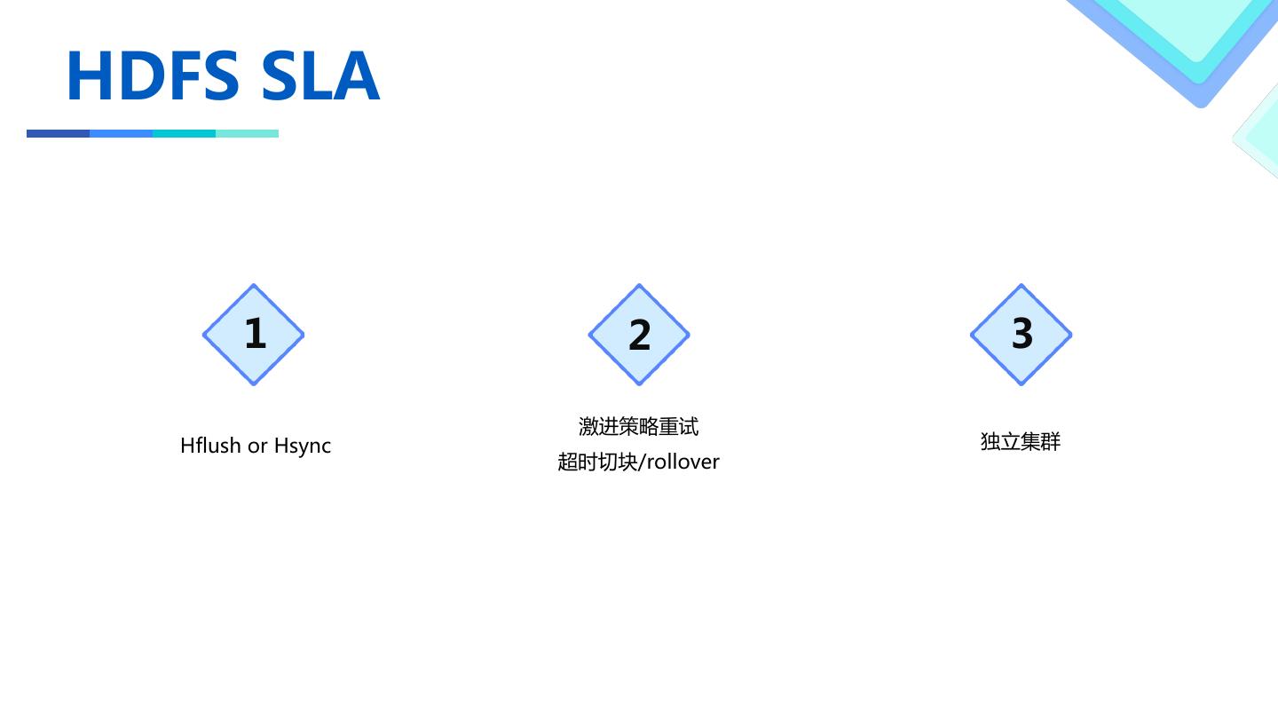 14 .HDFS SLA 1 2 3 激进策略重试 Hflush or Hsync 独立集群 超时切块/rollover