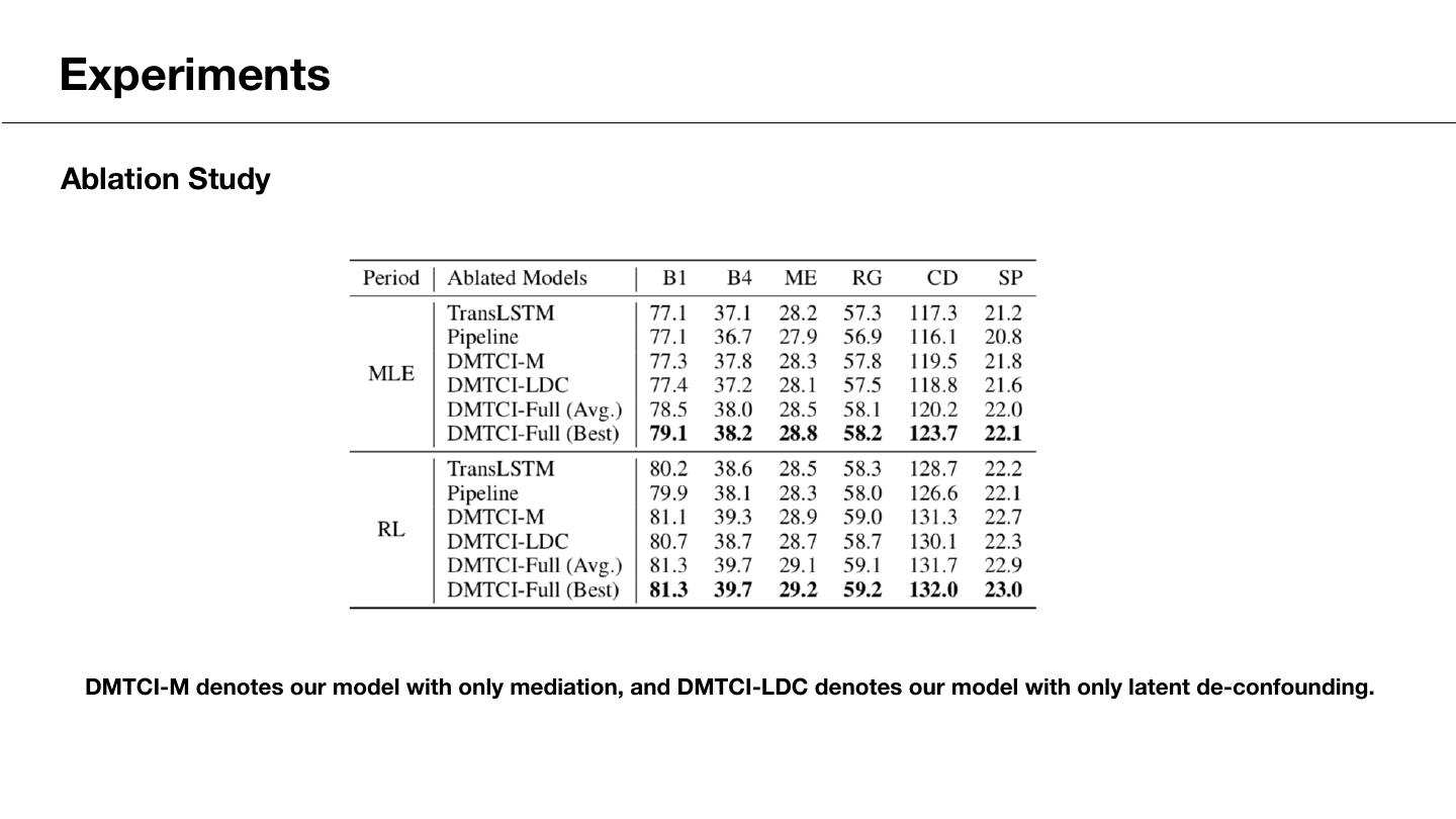 23 .Experiments Ablation Study DMTCI-M denotes our model with only mediation, and DMTCI-LDC denotes our model with only latent de-confounding.