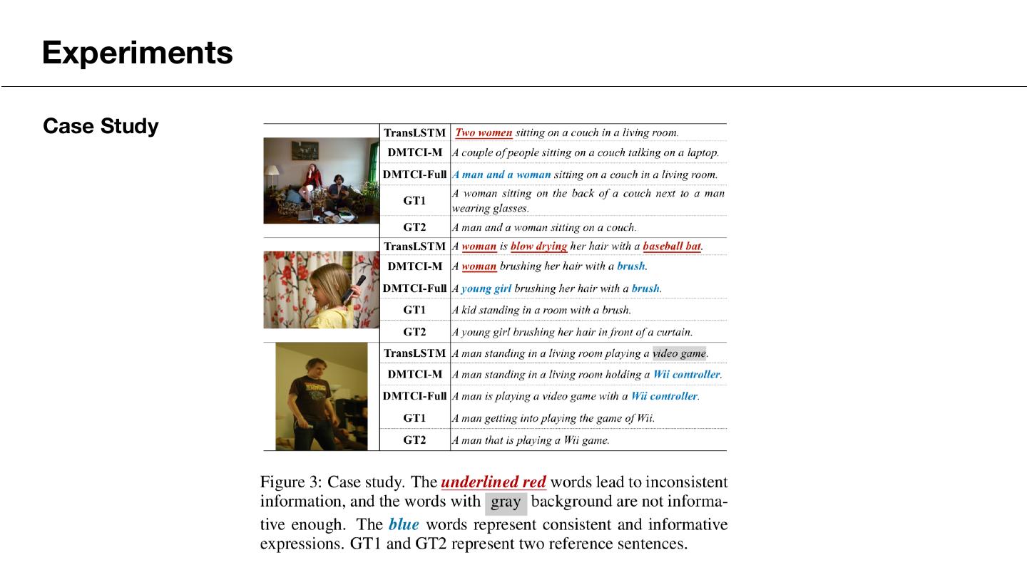 21 . Experiments 1) Our model DTMCI outperforms baseline TransLSTM a lot; 2) When combined with a trained selector, our model can be further improved to reach SOTA; 3) When gold mediators are fed, the CIDEr can reach 141.9, which is a surprising result.