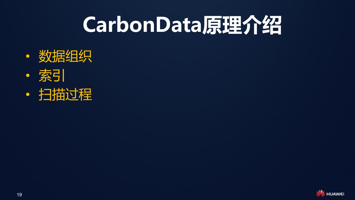 19 . CarbonData原理介绍 • 数据组织 • 索引 • 扫描过程 19