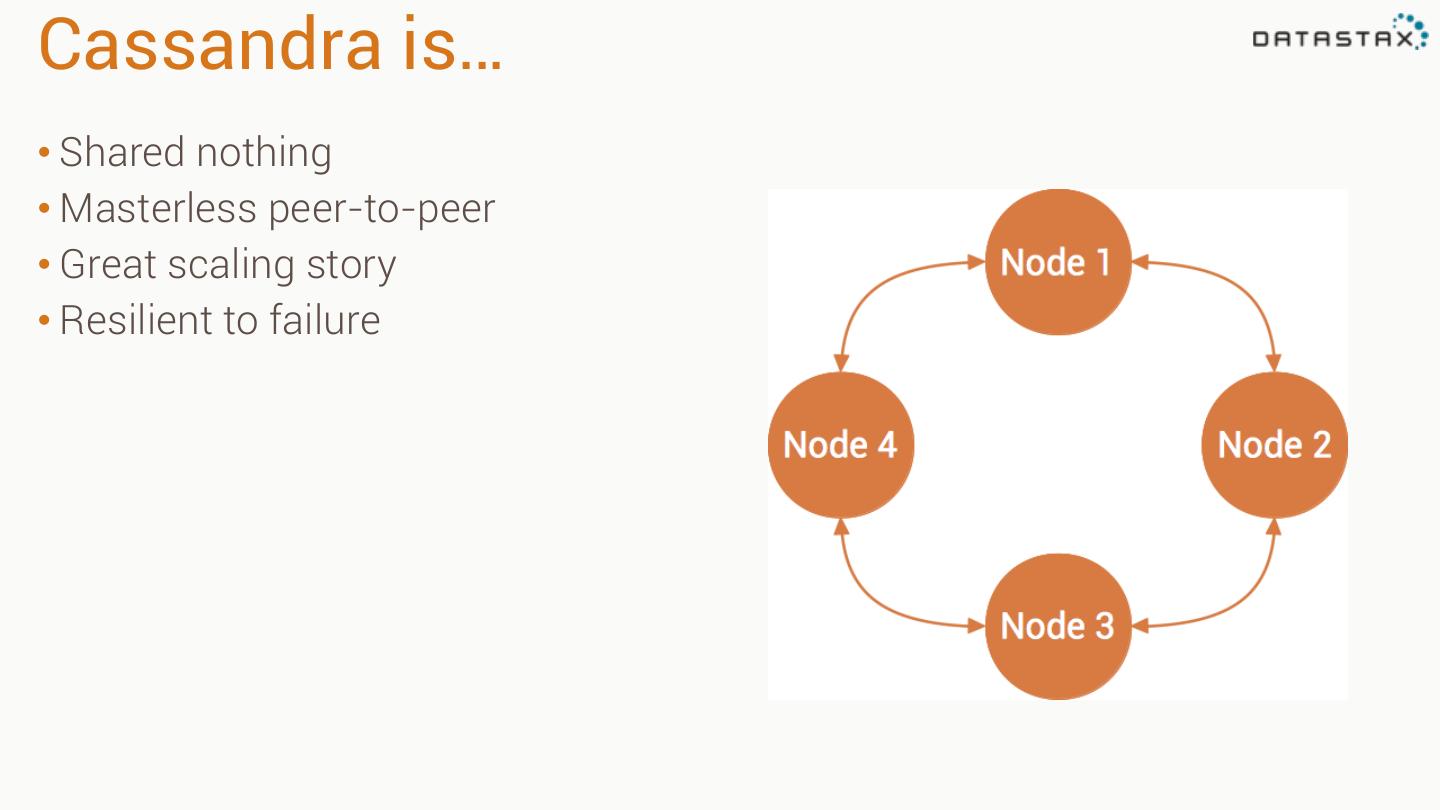 4 .Cassandra is… • Shared nothing • Masterless peer-to-peer • Great scaling story • Resilient to failure