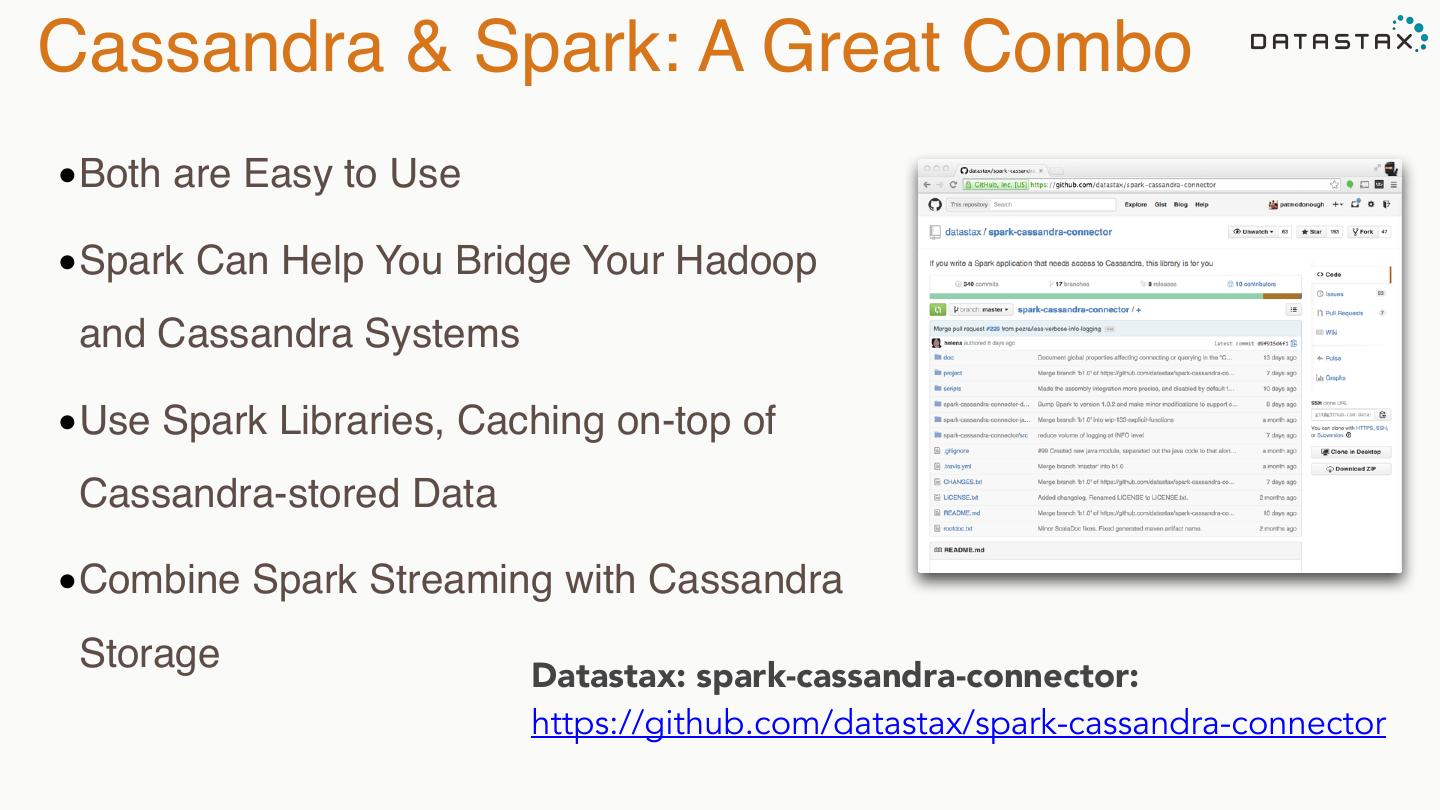 15 .Cassandra & Spark: A Great Combo •Both are Easy to Use •Spark Can Help You Bridge Your Hadoop and Cassandra Systems •Use Spark Libraries, Caching on-top of Cassandra-stored Data •Combine Spark Streaming with Cassandra Storage Datastax: spark-cassandra-connector: https://github.com/datastax/spark-cassandra-connector