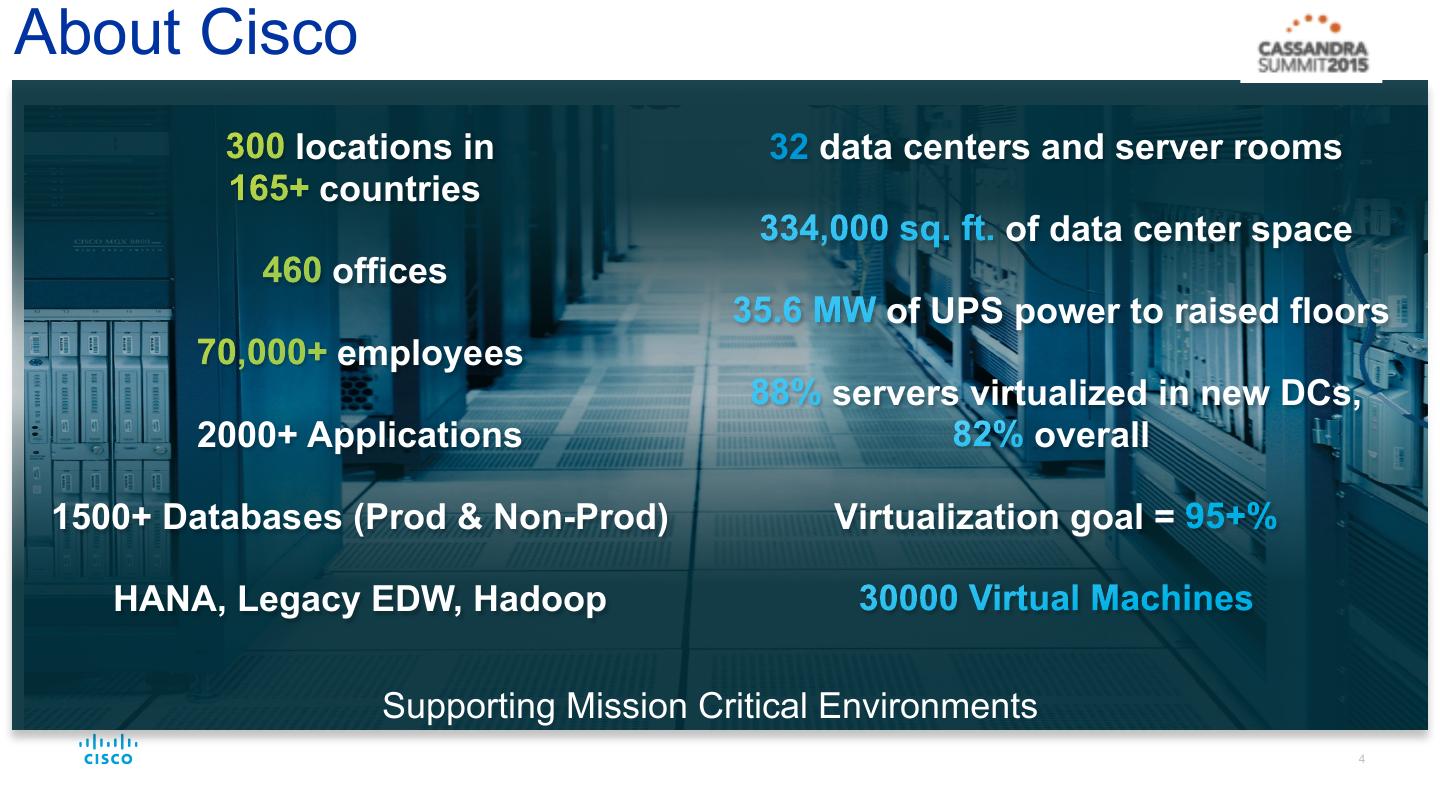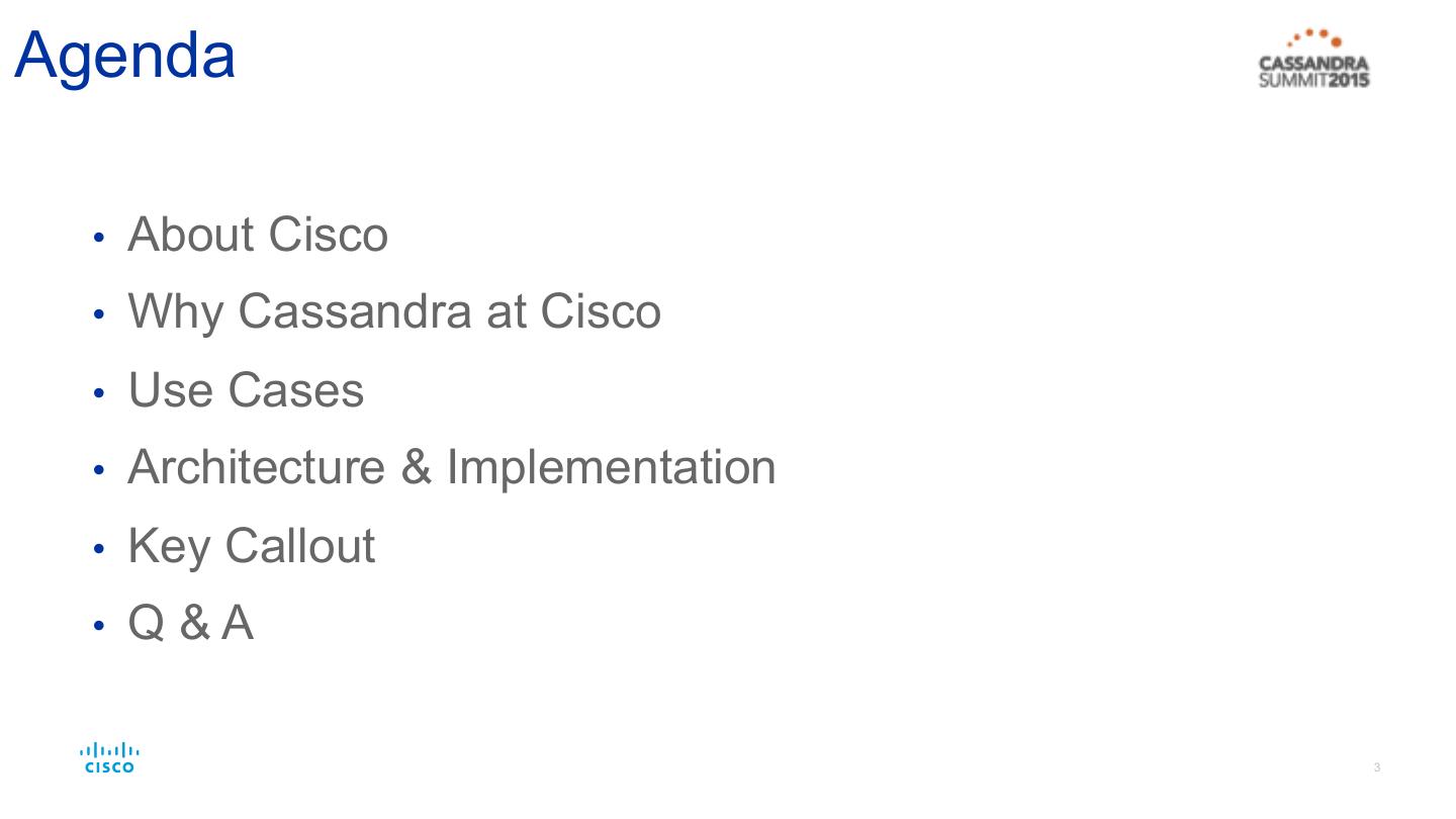 3 .Agenda • About Cisco • Why Cassandra at Cisco • Use Cases • Architecture & Implementation • Key Callout • Q&A 3