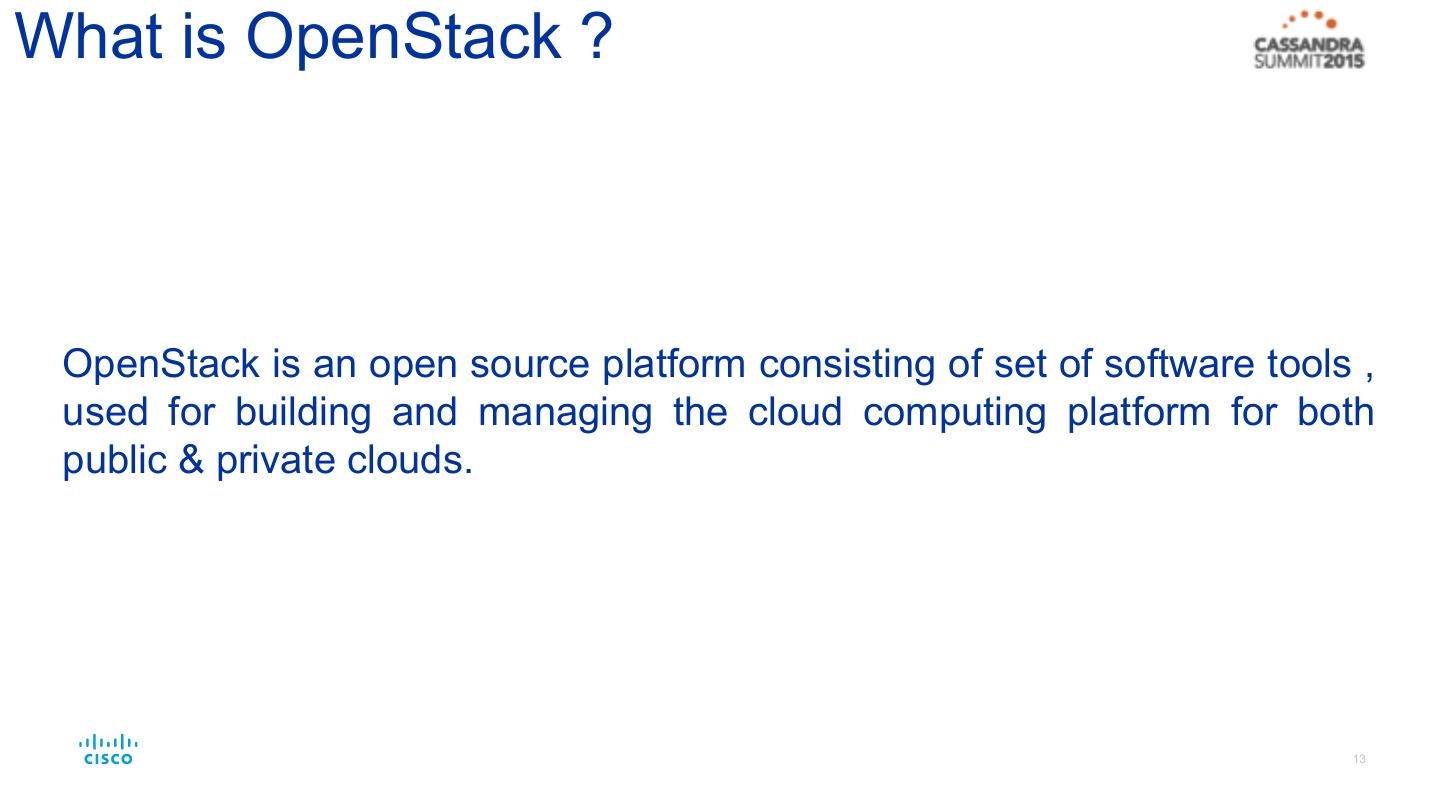 13 .What is OpenStack ? OpenStack is an open source platform consisting of set of software tools , used for building and managing the cloud computing platform for both public & private clouds. 13