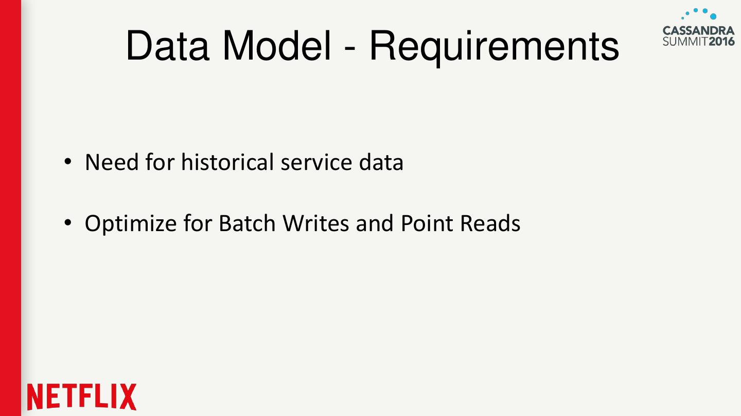 18 . Data Model - Requirements • Need for historical service data • Optimize for Batch Writes and Point Reads