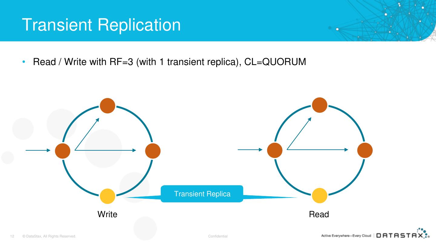 11 . Transient Replication • Read / Write with RF=3, CL=QUORUM Write Read 11 © DataStax, All Rights Reserved. Confidential