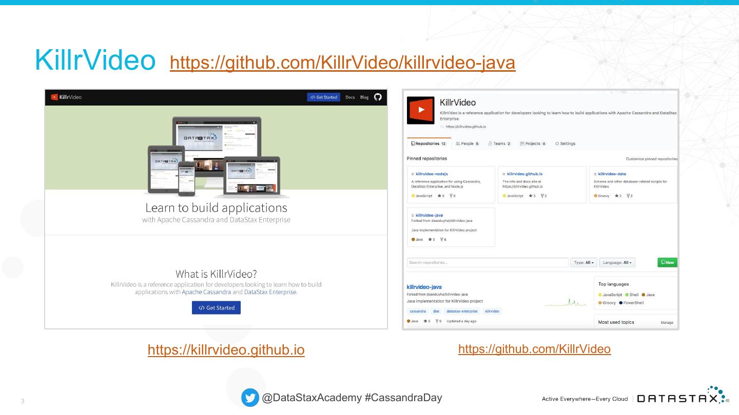 2 . KillrVideo - a video sharing application 2 @DataStaxAcademy #CassandraDay