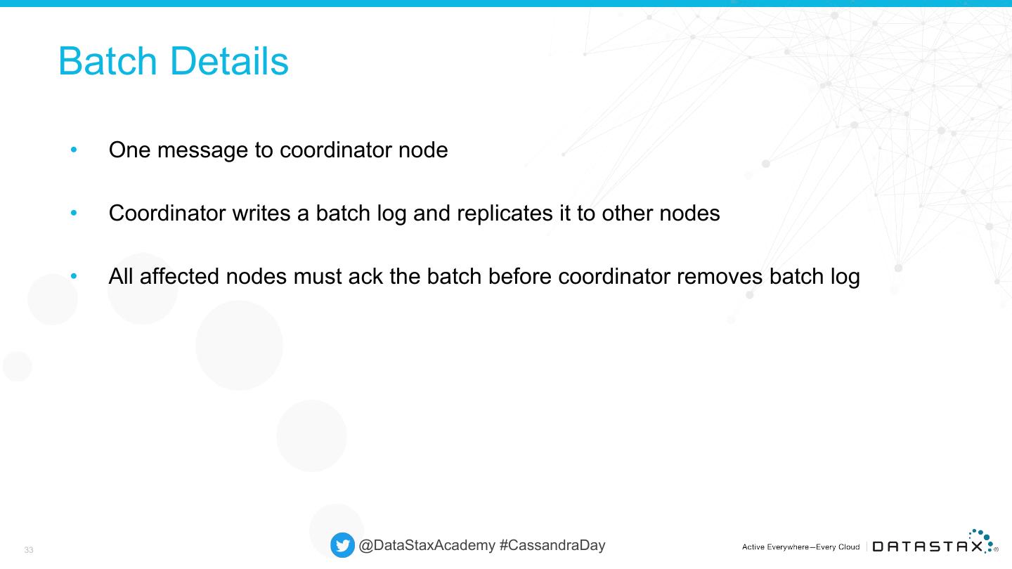 10 . Contact Points Only one necessary Unless that node is down More are good Seed nodes are good; more “in the know” 10 @DataStaxAcademy #CassandraDay