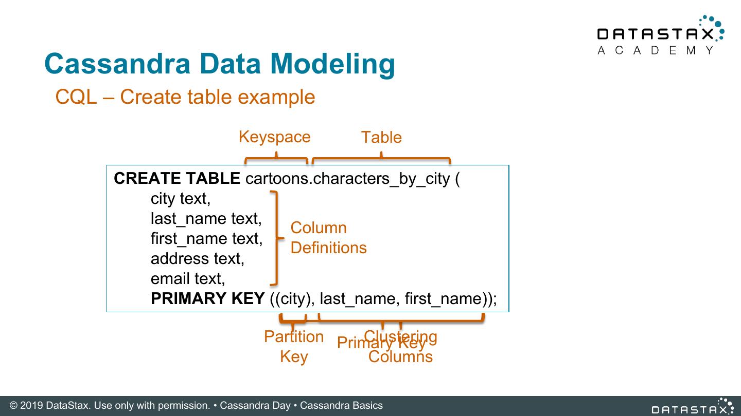 18 . Cassandra data modeling © 2019 DataStax. Use only with permission. • Cassandra Day • Cassandra Basics