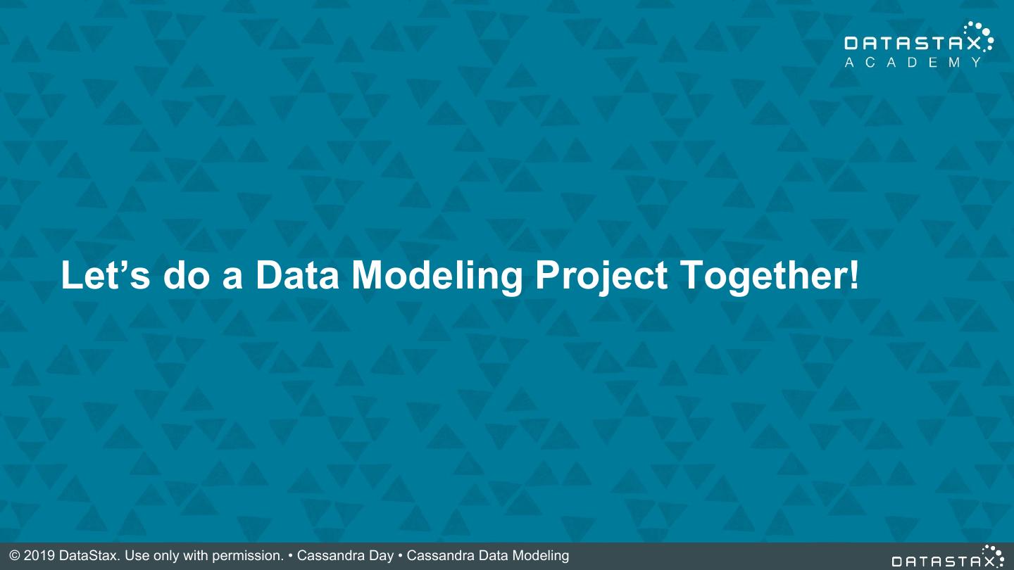 28 . Let’s do a Data Modeling Project Together! © 2019 DataStax. Use only with permission. • Cassandra Day • Cassandra Data Modeling