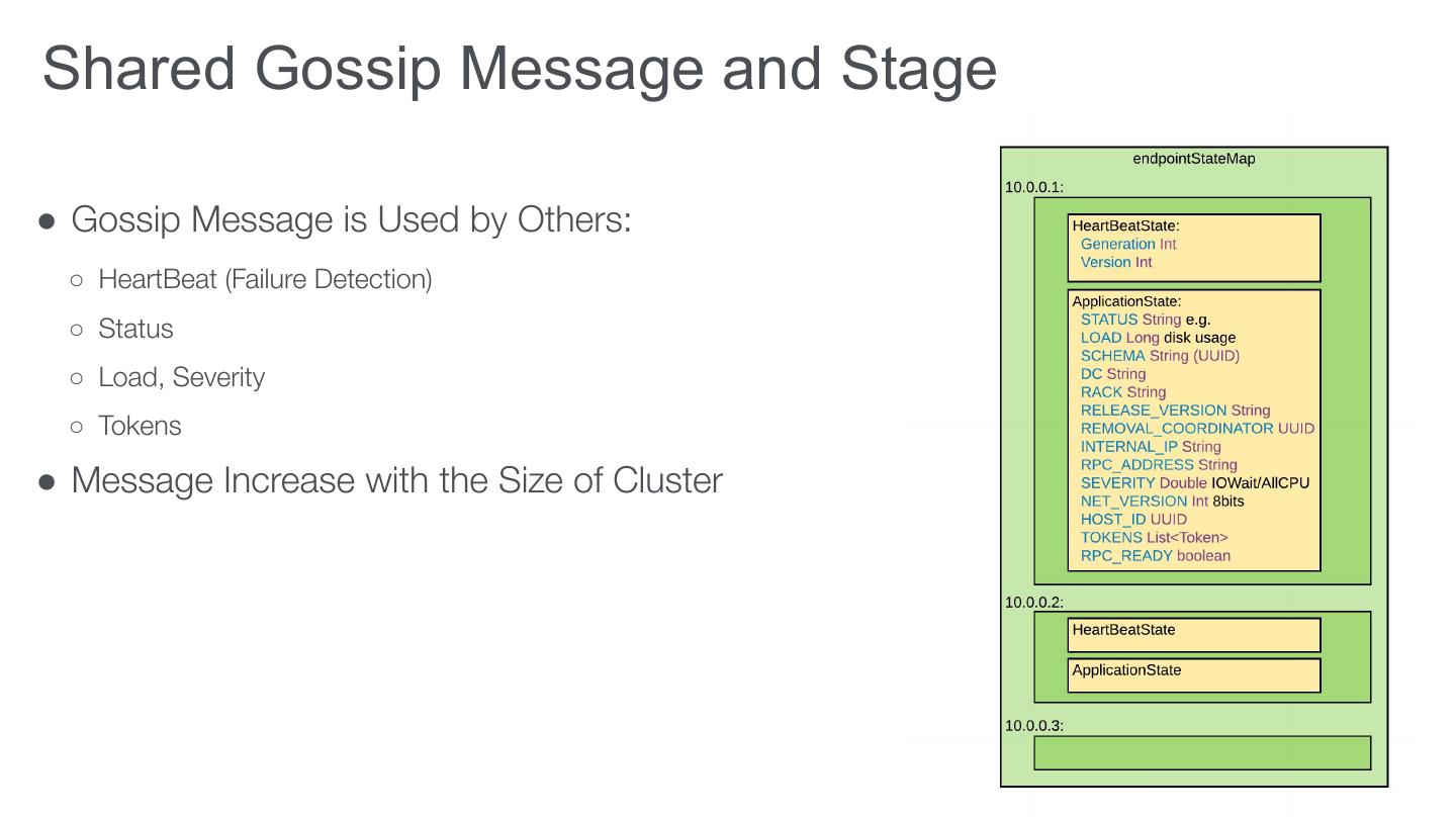 12 .Shared Gossip Message and Stage ● Gossip Message is Used by Others: ○ HeartBeat (Failure Detection) ○ Status ○ Load, Severity ○ Tokens ● Message Increase with the Size of Cluster 12