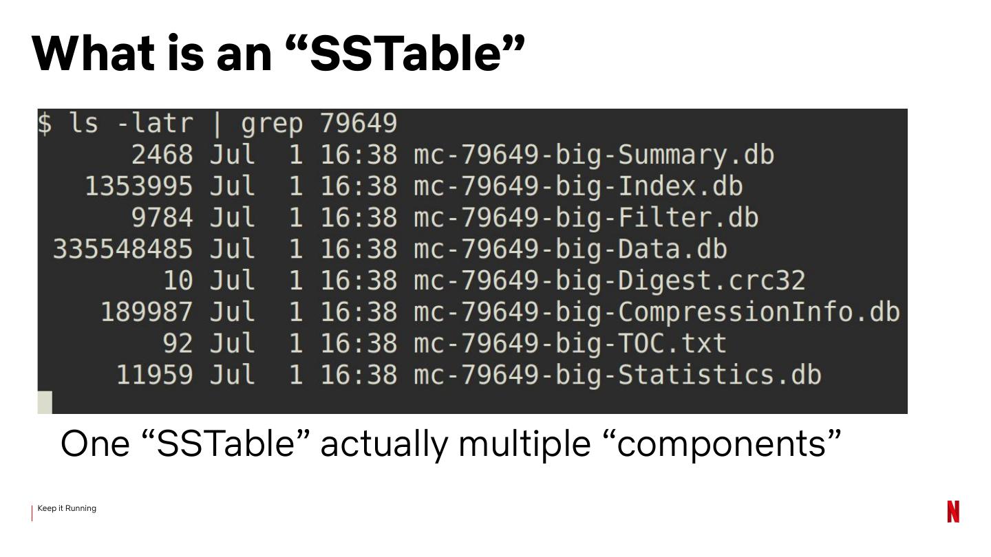 6 .What is an “SSTable” One “SSTable” actually multiple “components” Keep it Running