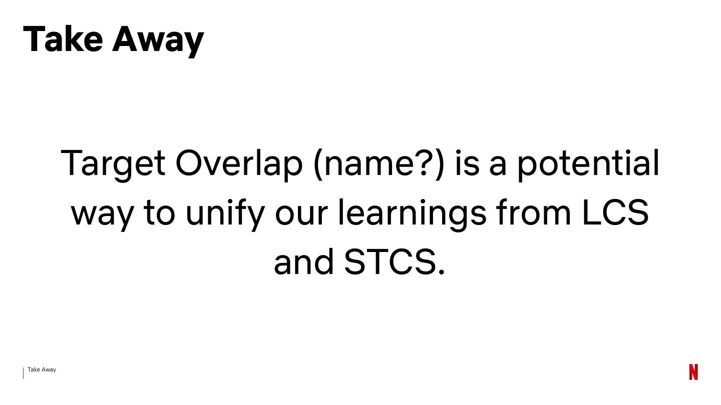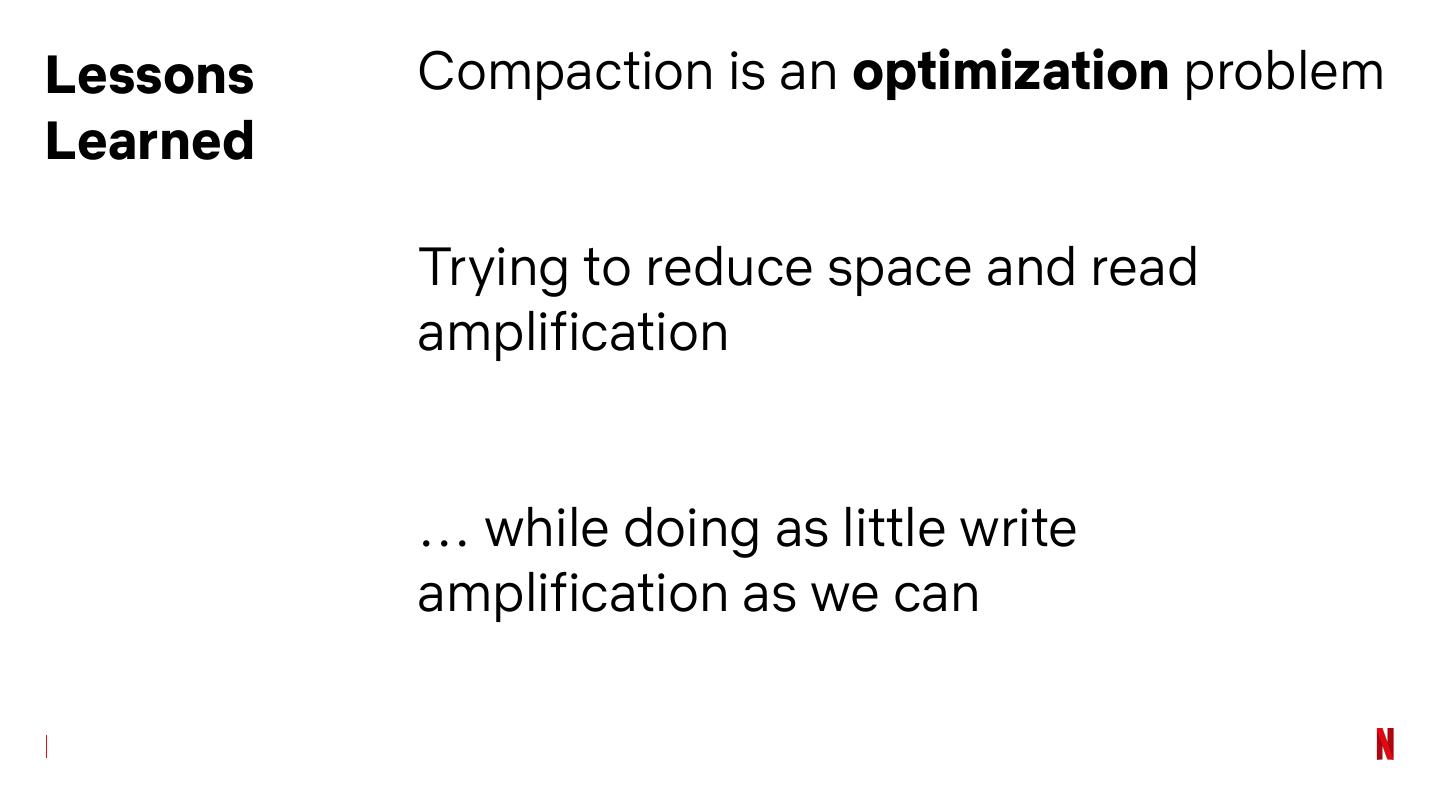 17 .Lessons Compaction is an optimization problem Learned Trying to reduce space and read amplification … while doing as little write amplification as we can