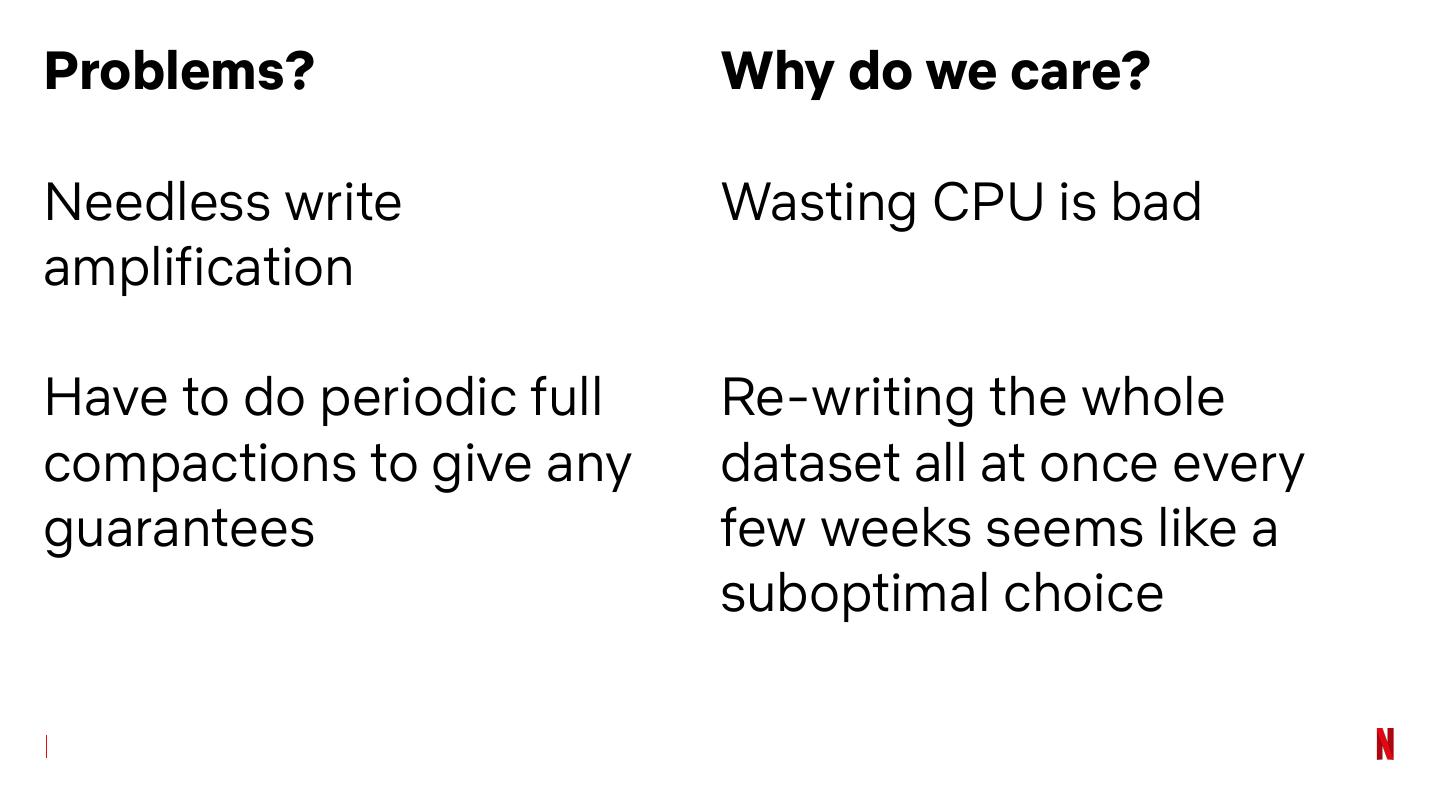 16 .Problems? Why? Full compaction Have to be able to make guarantees Manual compaction Targeted incidents (hot partitions) Handle tons of small Repair is fun this way SSTables