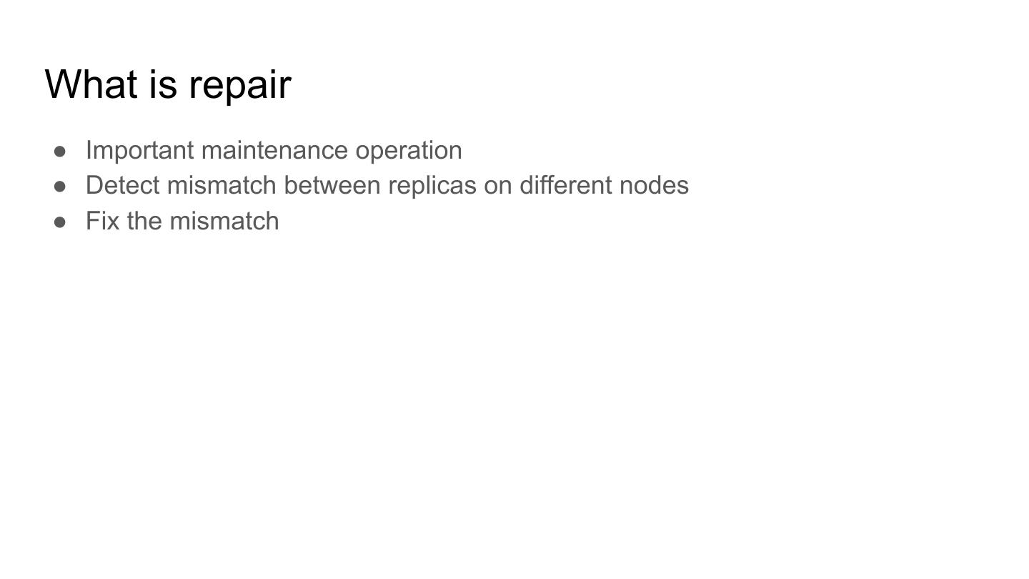 3 .What is repair ● Important maintenance operation ● Detect mismatch between replicas on different nodes ● Fix the mismatch