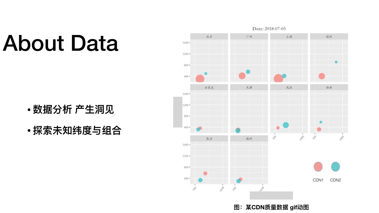 9 .About Data • 数据分析 产⽣生洞洞⻅见 • 探索未知纬度与组合 CDN1 CDN2 图:某CDN质量量数据 gif动图