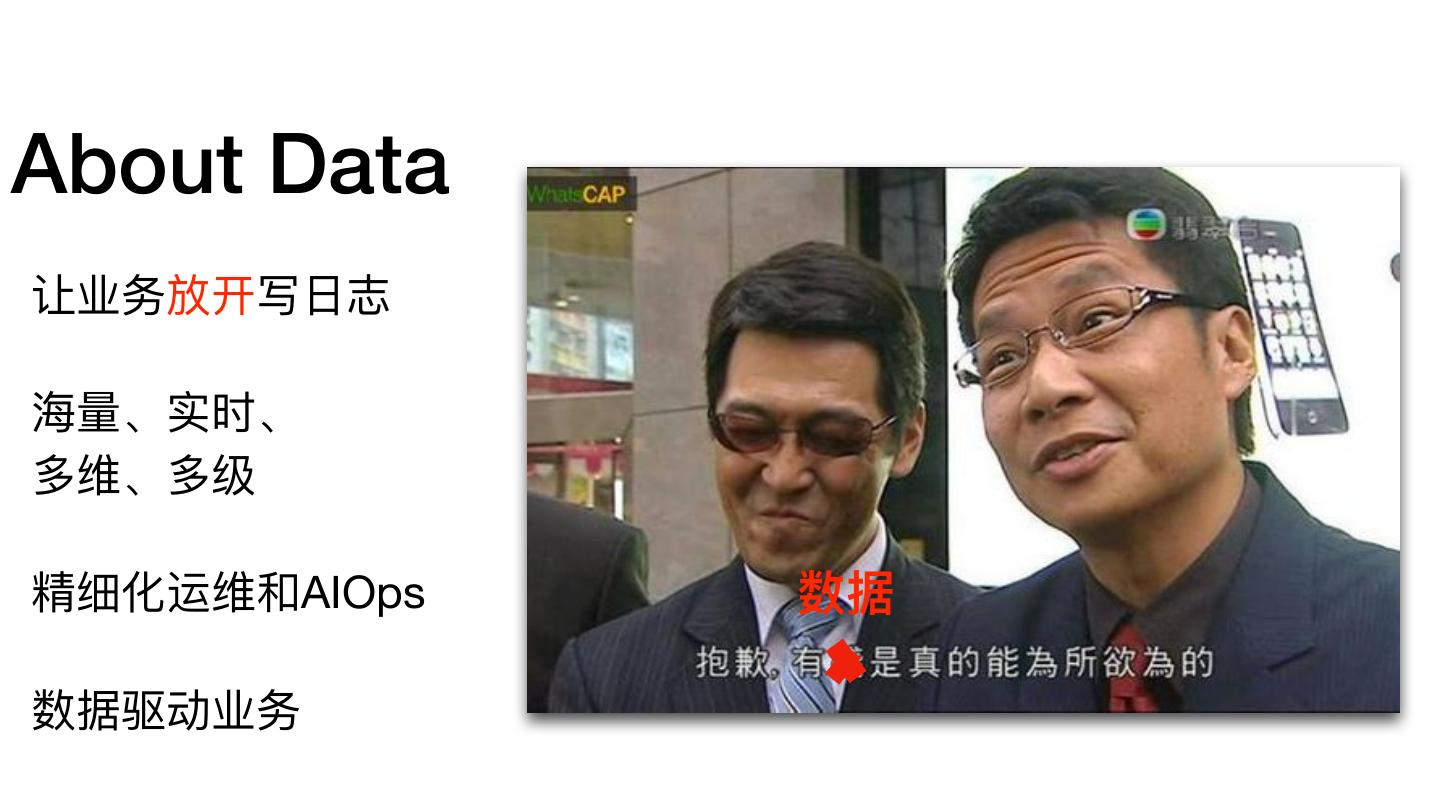 14 .About Data 让业务放开写⽇日志 海海量量、实时、 多维、多级 精细化运维和AIOps 数据 数据驱动业务