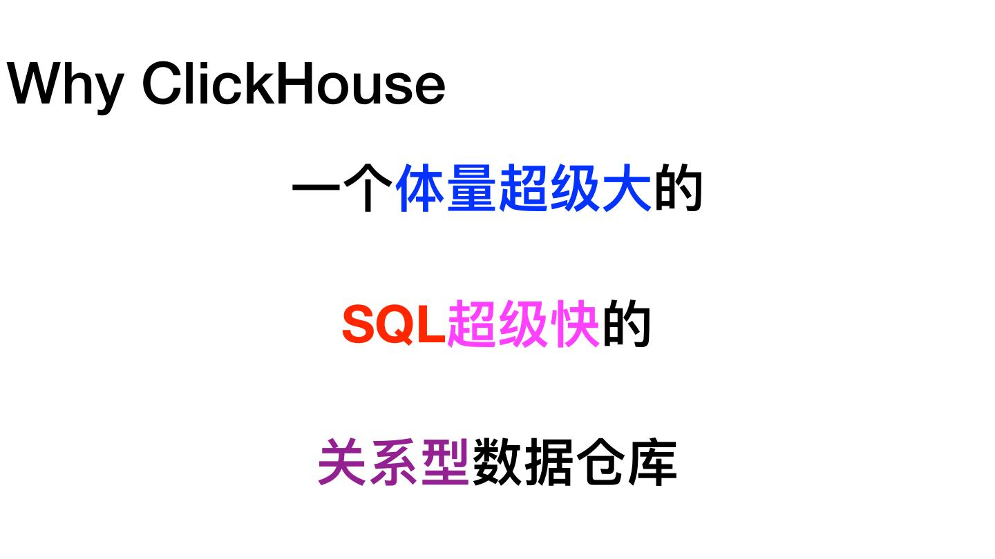 19 .Why ClickHouse ⼀一个体量量超级⼤大的 SQL超级快的 关系型数据仓库