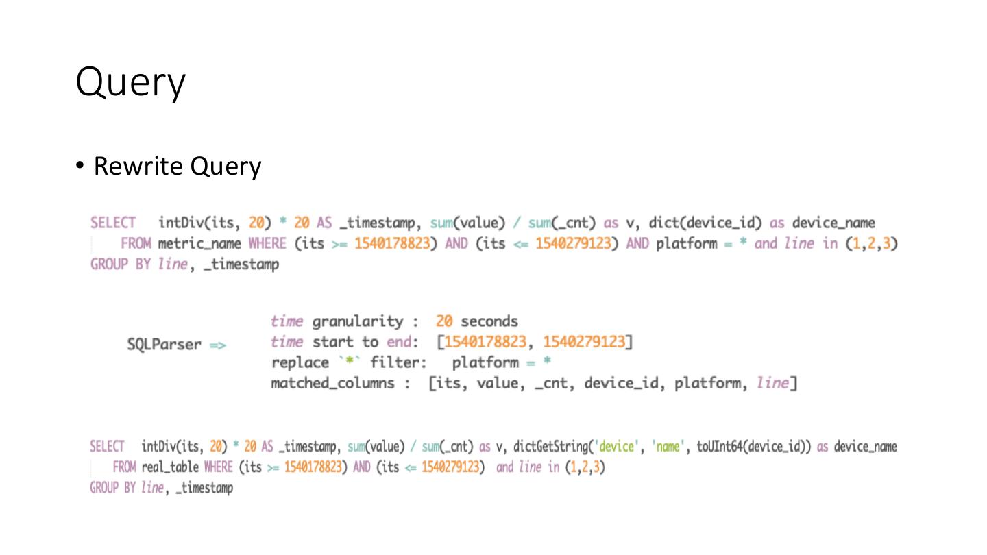 13 .Query • Rewrite Query o SQL Parser o Custom function support o Custom query statement