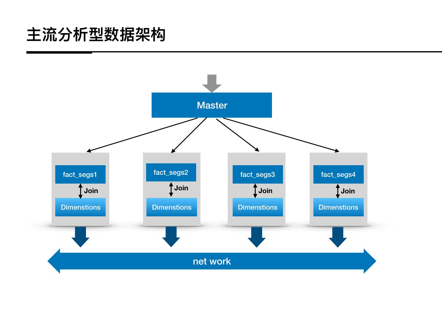 12 .主流分析型数据架构 Master fact_segs1 fact_segs2 fact_segs3 fact_segs4 Join Join Join Join Dimenstions Dimenstions Dimenstions Dimenstions net work