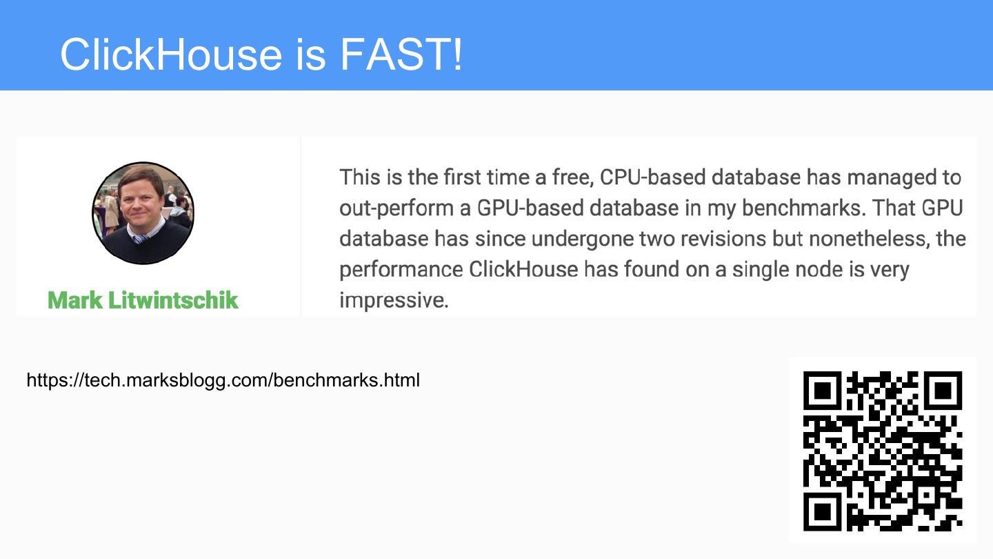 10 . ClickHouse is FAST! https://tech.marksblogg.com/benchmarks.html