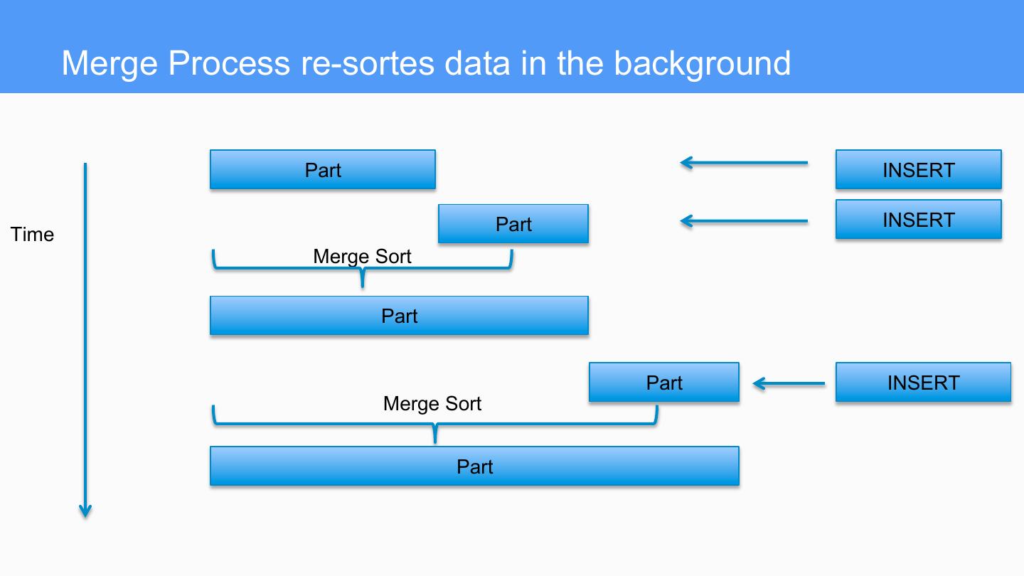 12 . Merge Process re-sortes data in the background Part INSERT Part INSERT Time Merge Sort Part Part INSERT Merge Sort Part