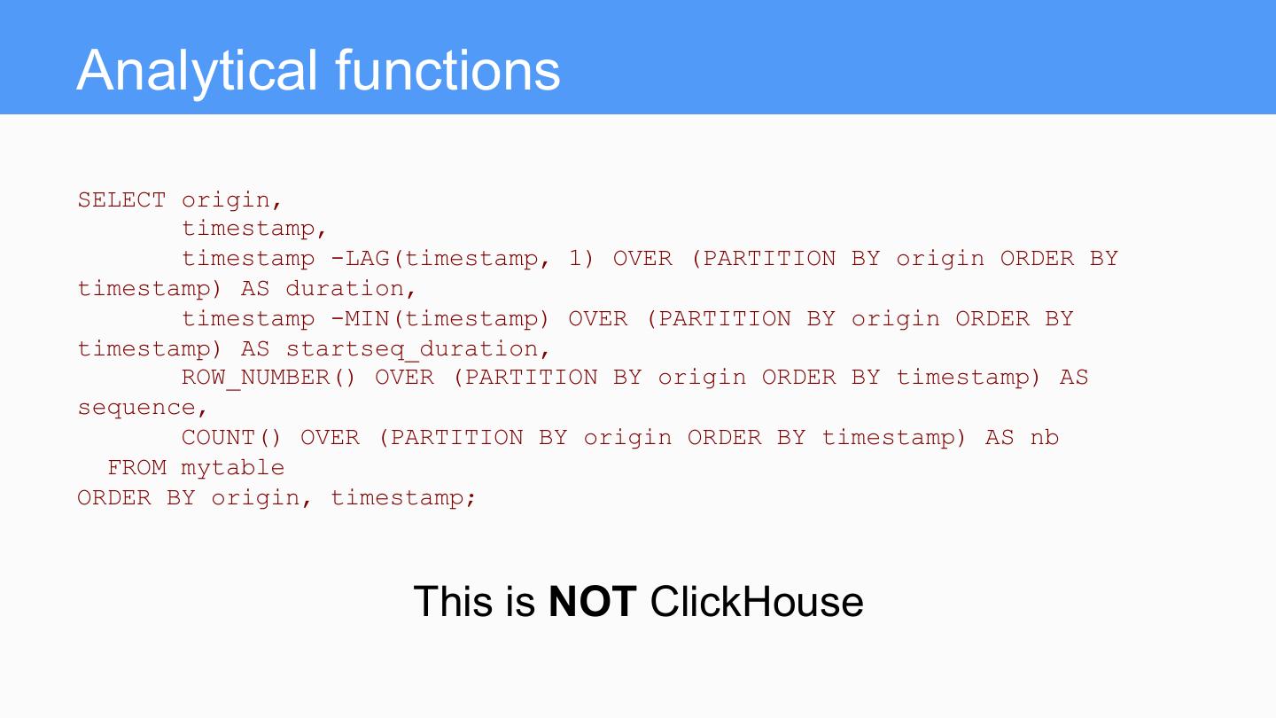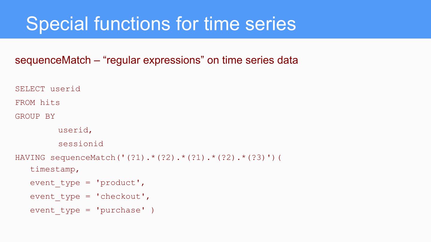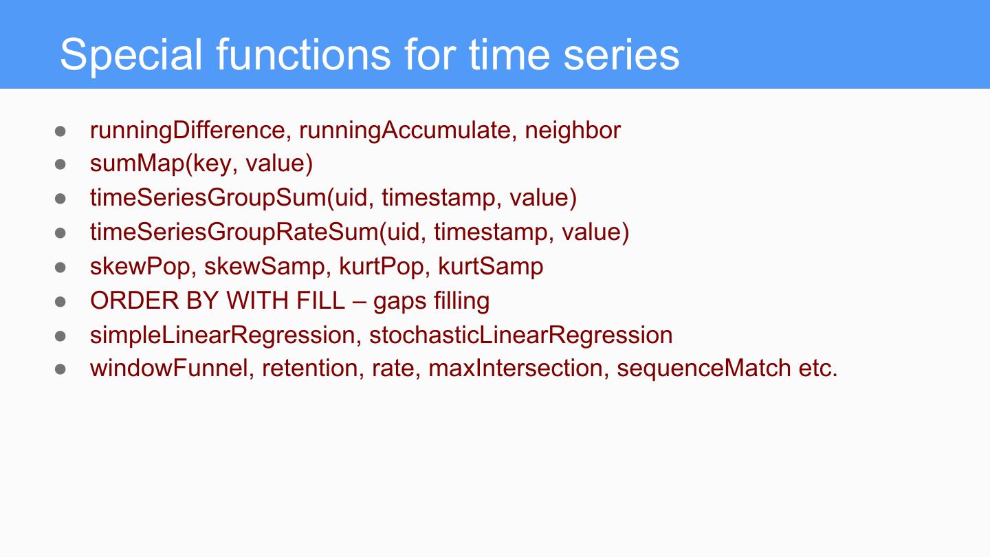 29 .ClickHouse as time series DBMS Time series performance with flexibility of feature rich analytical SQL DBMS