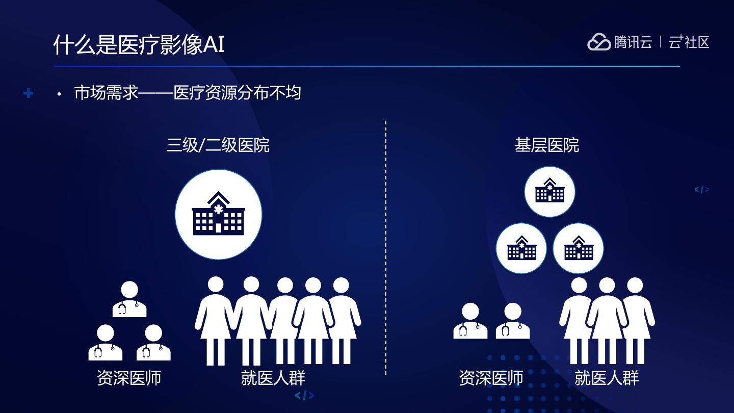 6 .什么是医疗影像AI • 市场需求——医疗资源分布不均 三级/二级医院 基层医院 资深医师 就医人群 资深医师 就医人群