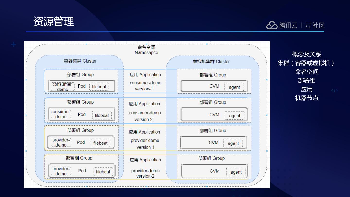 28 .资源管理 概念及关系 集群(容器或虚拟机) 命名空间 部署组 应用 机器节点