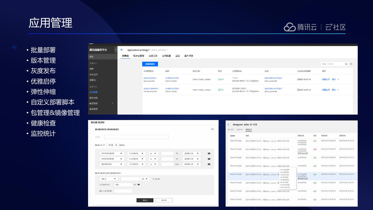 29 .应用管理 • 批量部署 • 版本管理 • 灰度发布 • 优雅启停 • 弹性伸缩 • 自定义部署脚本 • 包管理&镜像管理 • 健康检查 • 监控统计
