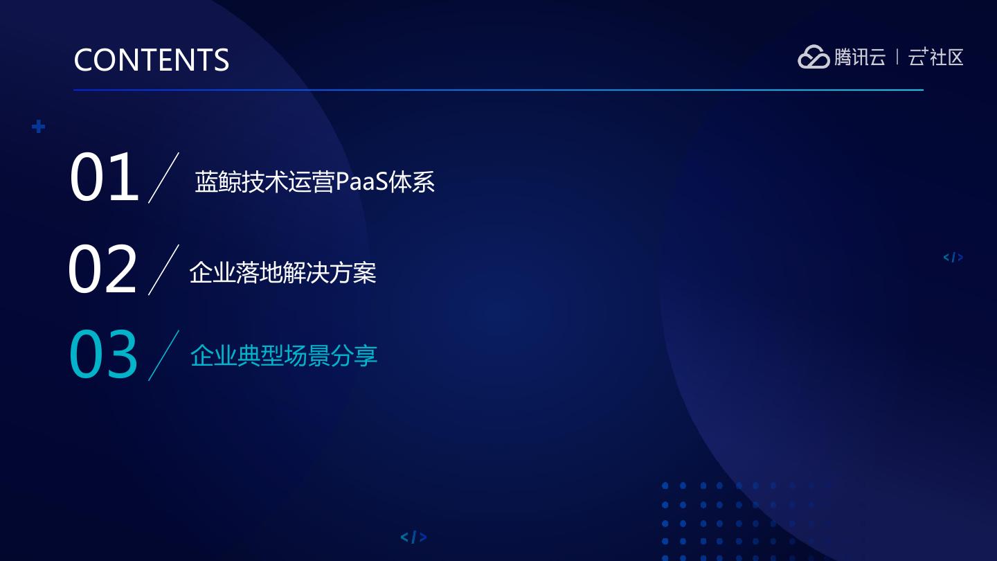 12 .CONTENTS 01 蓝鲸技术运营PaaS体系 02 企业落地解决方案 03 企业典型场景分享