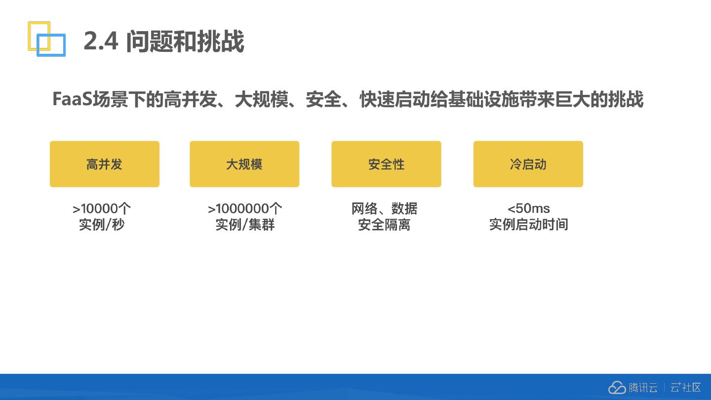 13 . 2.4 问题和挑战 FaaS场景下的高并发、大规模、安全、快速启动给基础设施带来巨大的挑战