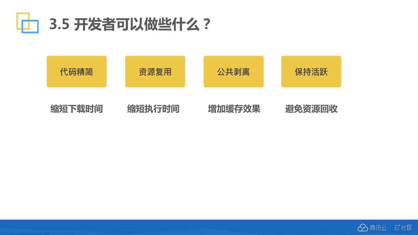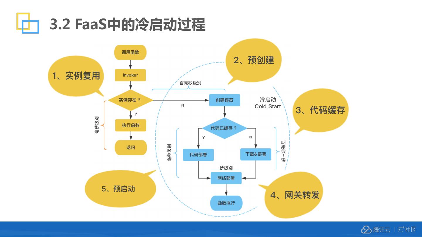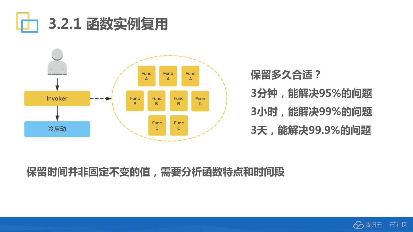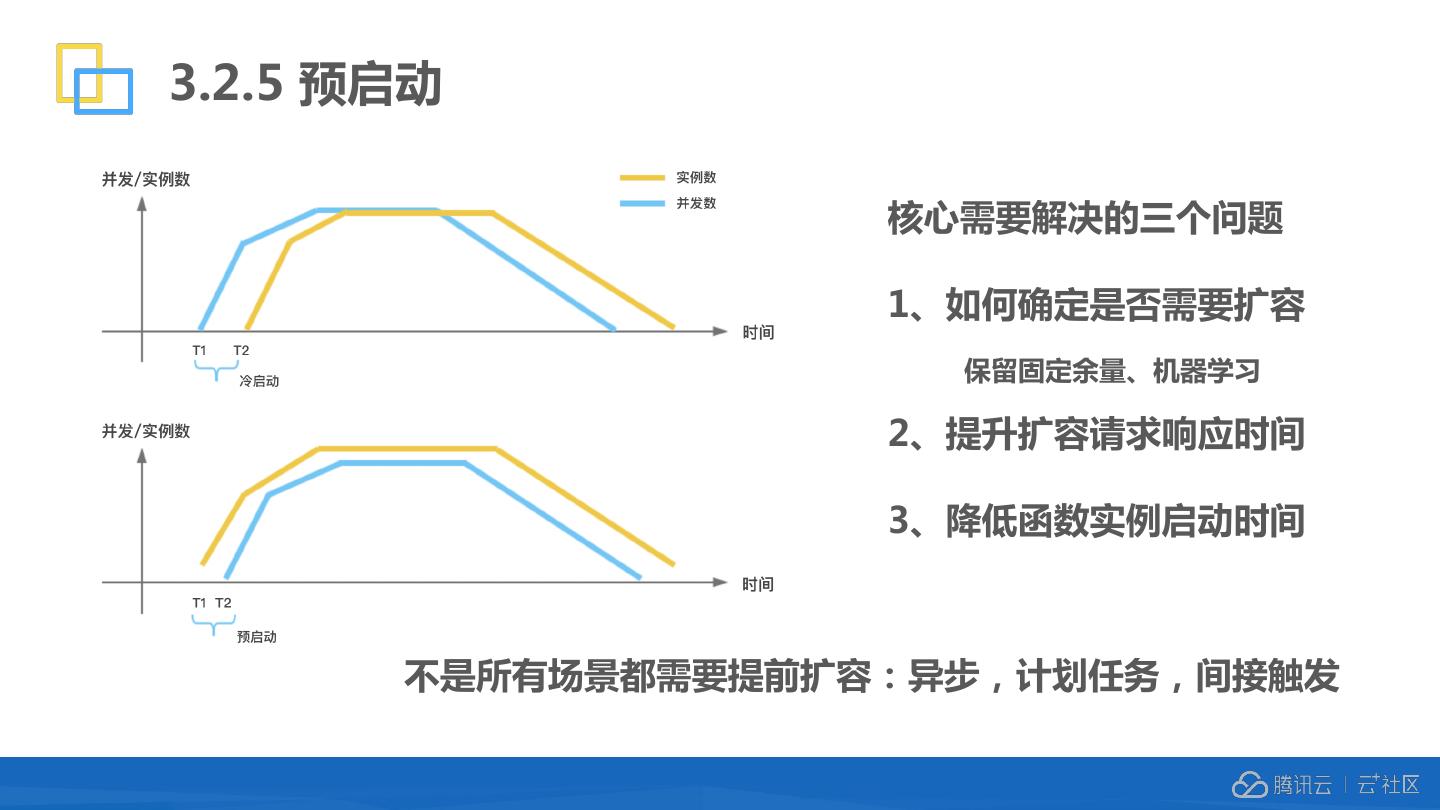 21 .3.2.5 预启动 核心需要解决的三个问题 1、如何确定是否需要扩容 保留固定余量、机器学习 2、提升扩容请求响应时间 3、降低函数实例启动时间 不是所有场景都需要提前扩容:异步,计划任务,间接触发