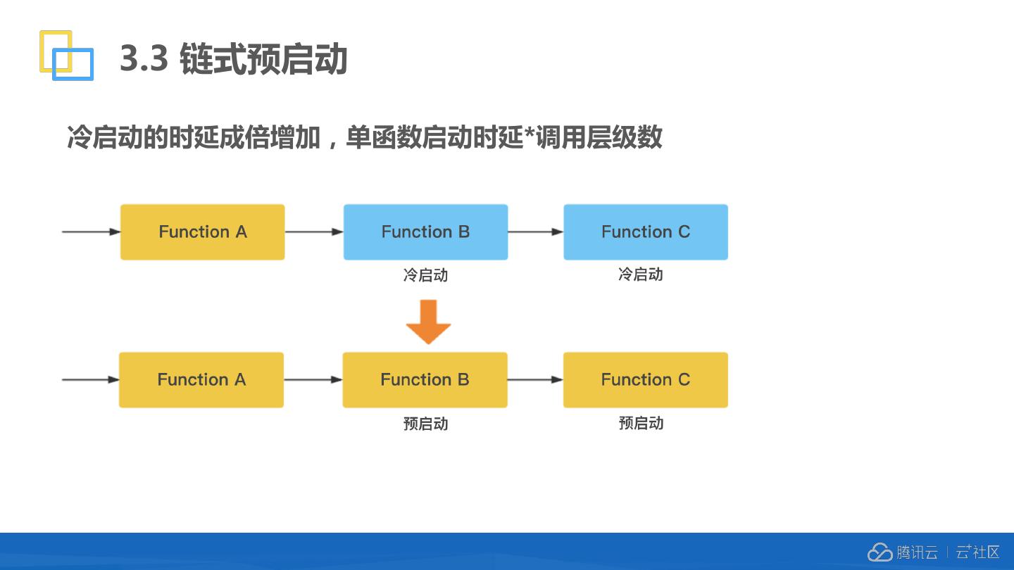 22 . 3.3 链式预启动 冷启动的时延成倍增加,单函数启动时延*调用层级数