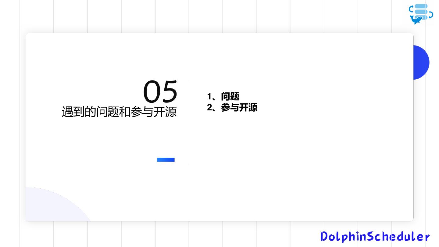 27 . DolphinScheduler 一、问题 1、资源管理,如果任务的jar包更新,需要下线所有依赖当前jar包的任务,重新上线 2、任务会出现阻塞,页面无法kill 二、参与开源 1、提升技能水平 2、提高代码质量 3、获得项目经验 4、建立更多的社区人脉 5、参与贡献也有很多的方式, 主要有代码贡献和非代码贡献。非代码贡献主要是有,反馈缺陷;帮助社区其他用户回答相关的问题