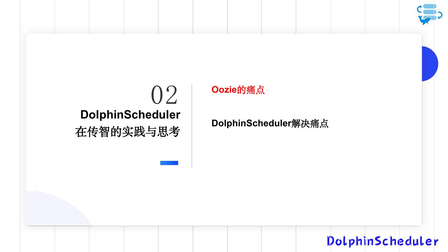 12 . 02 Oozie的痛点 DolphinScheduler DolphinScheduler解决痛点 在传智的实践与思考