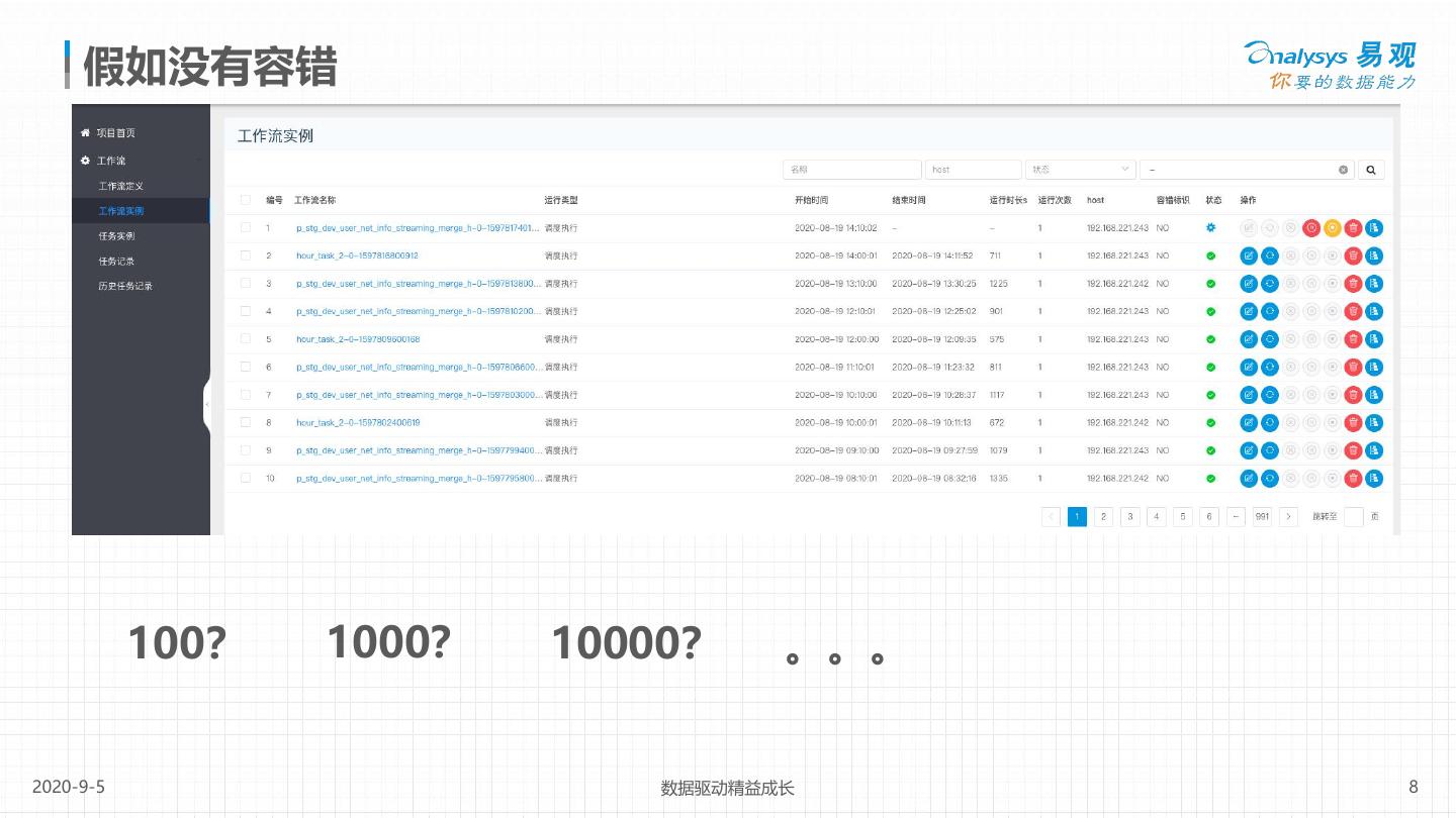 8 . 假如没有容错 100? 1000? 10000? 。。。 2020-9-5 数据驱动精益成长 8