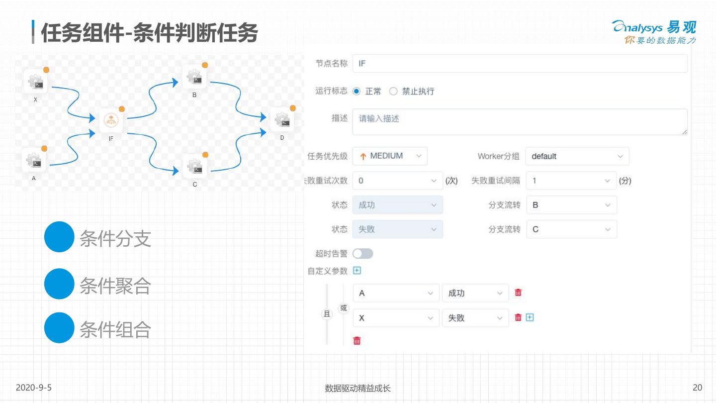 20 . 任务组件-条件判断任务 条件分支 条件聚合 条件组合 2020-9-5 数据驱动精益成长 20