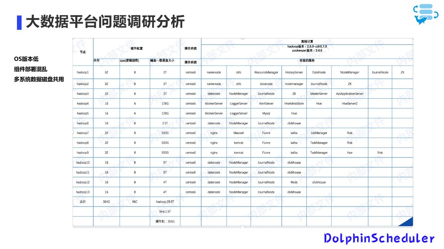 8 . 大数据平台问题调研分析 OS版本低 组件部署混乱 多系统数据磁盘共用