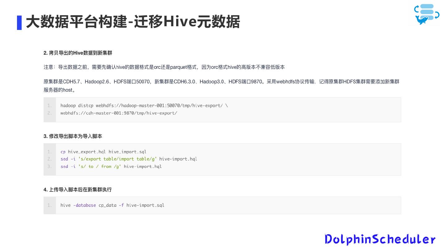 14 .大数据平台构建-任务迁移流程 历史任务 }~•€•‚Z[ !"#$ &' CDH6.3.0!" Schema #$%& CDH6. ƒ„…† !"# '()* + 3.0 $% ,- =‡ˆW