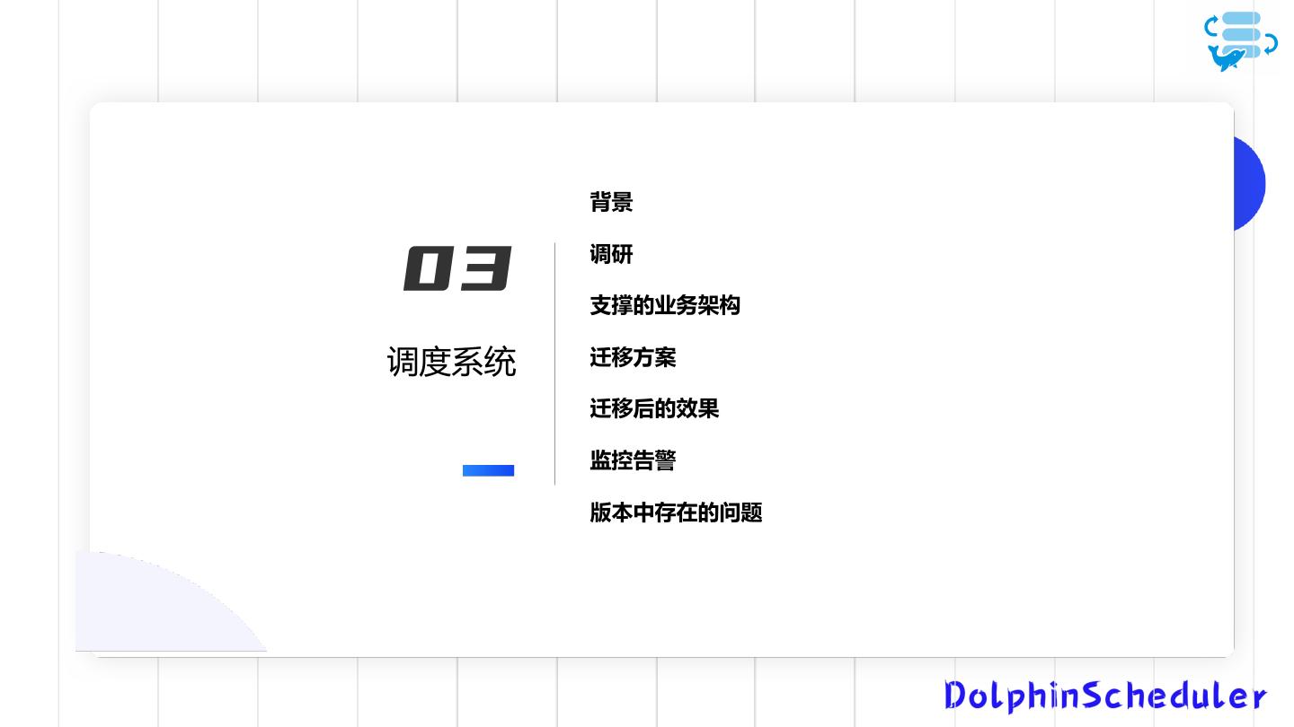 2 .目录 CONTENTS "# 背景 "! 大数据平台架构 "$ 调度平台 "% 下一步计划 "5 拥抱开源