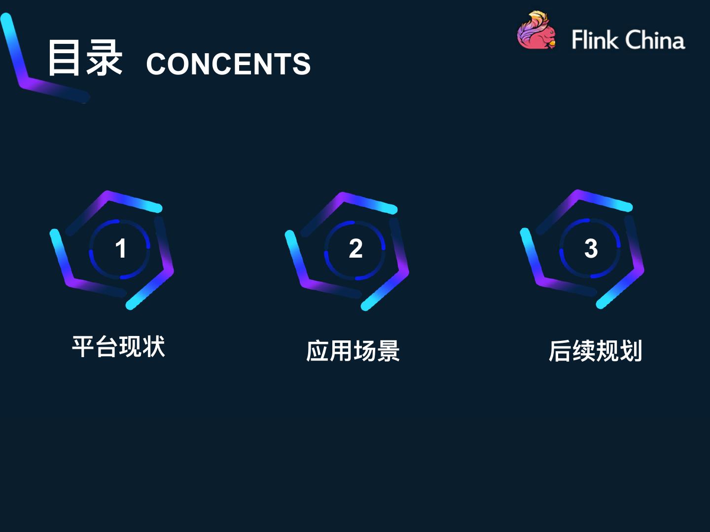 2 .⽬目录 CONCENTS 1 2 3 平台现状 应⽤用场景 后续规划