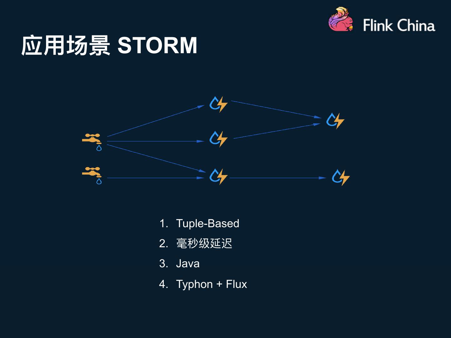 8 .应⽤用场景 STORM 1. Tuple-Based 2. 毫秒级延迟 3. Java 4. Typhon + Flux
