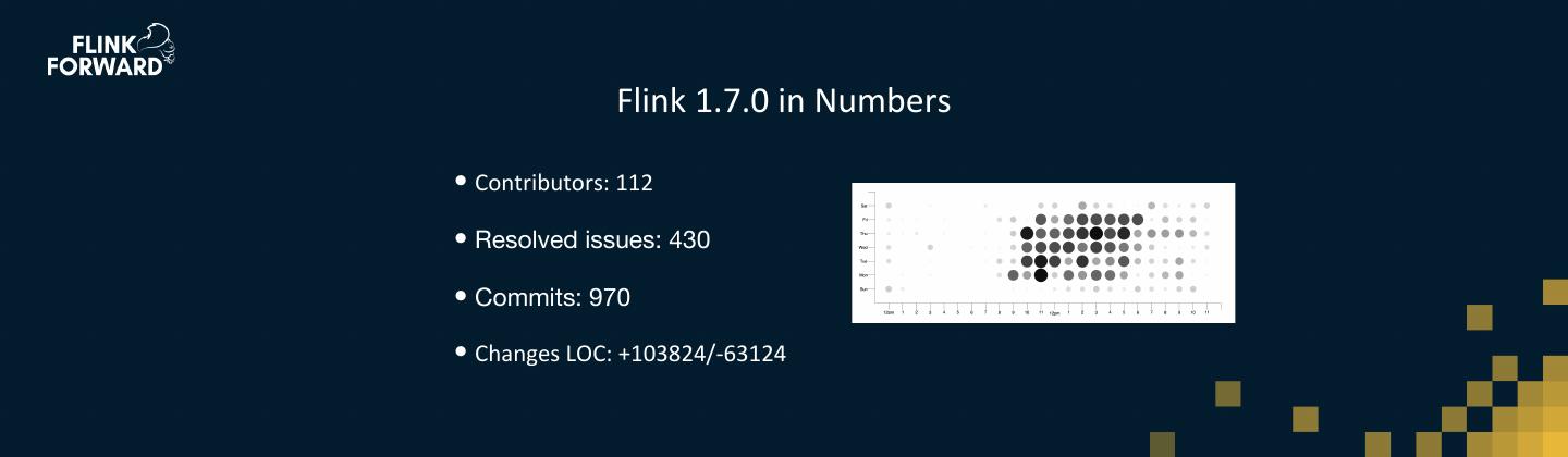 4 . Flink 1.7.0 in Numbers • Contributors: 112 • Resolved issues: 430 • Commits: 970 • Changes LOC: +103824/-63124
