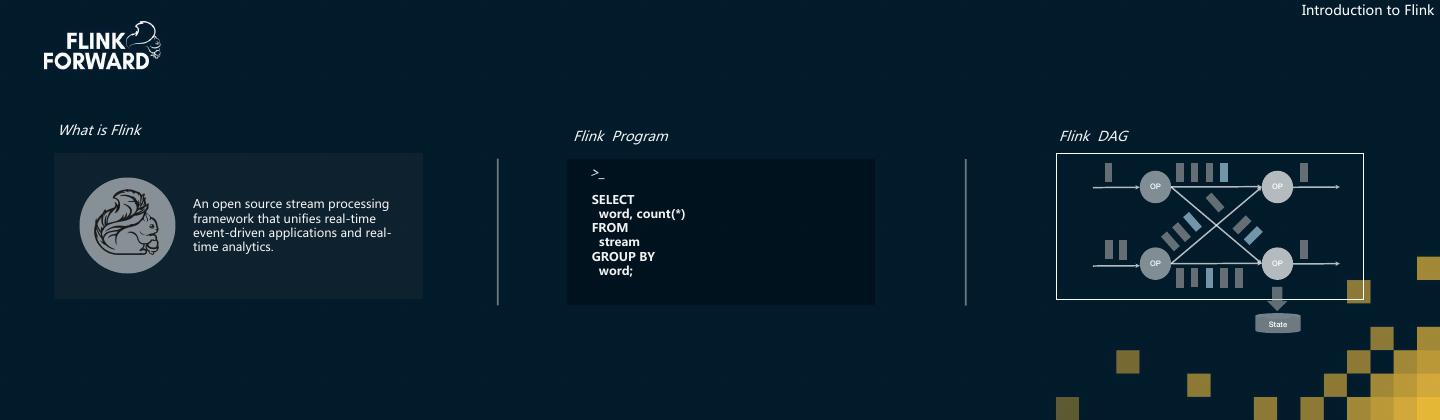 15 . Flink Architecture: New Design Table API & SQL DataStream TableAPI SQL Relational API Relational Relational DataStream API DataSet API Query Processor Stream Processing Batch Processing Query Optimization & Query Execution Runtime Runtime Distributed Streaming DataFlow DAG API & Stream Operators Local Cluster Cloud Local Cluster Cloud Single JVM Standalone/YARN ECS/EC2 Single JVM Standalone/YARN ECS/EC2 Old Design New Design