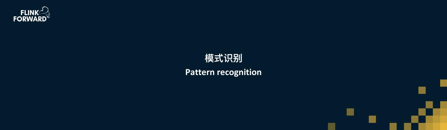 18 .SELECT * FROM Ticker MATCH_RECOGNIZE ( PARTITION BY symbol ORDER BY rowtime MEASURES B.price AS endPrice, COUNT(A.price) AS count ONE ROW PER MATCH AFTER MATCH SKIP TO FIRST B PATTERN (A+ B) DEFINE A AS AVG(A.price) < 15)