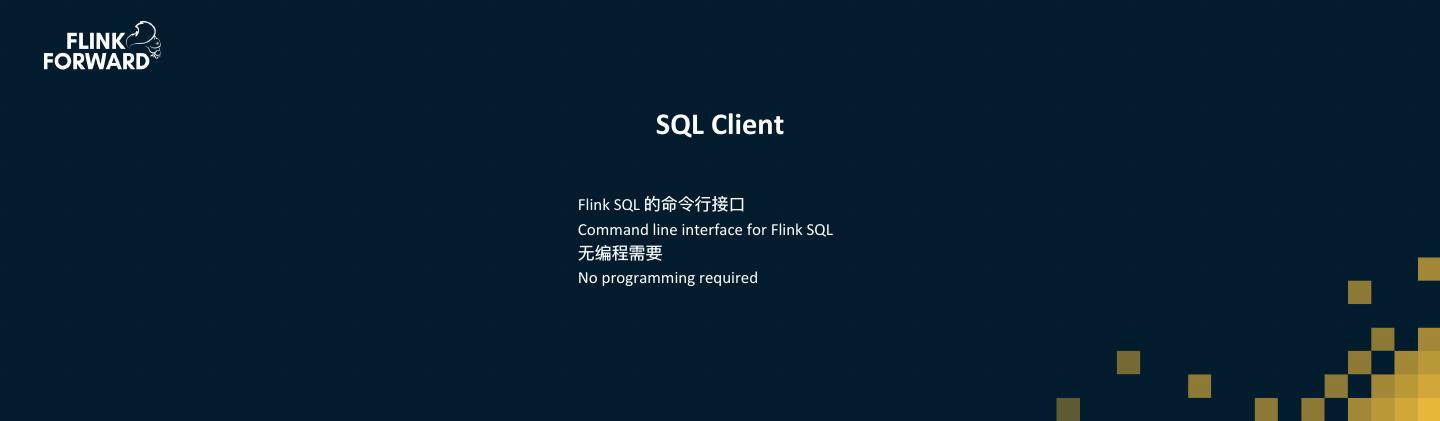 22 . SQL Client Flink SQL ጱեᤈളݗ Command line interface for Flink SQL ෫ᖫᑕᵱᥝ No programming required