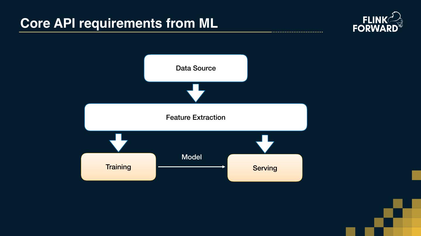 13 .Core API requirements from ML Data Source Feature Extraction Model Training Serving