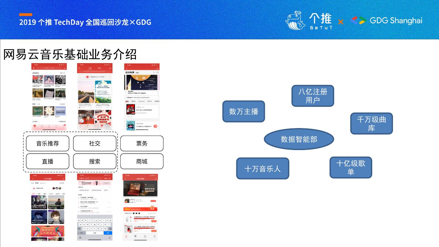 7 .网易云音乐基础业务介绍 八亿注册 用户 数万主播 千万级曲 库 数据智能部 十亿级歌 十万音乐人 单